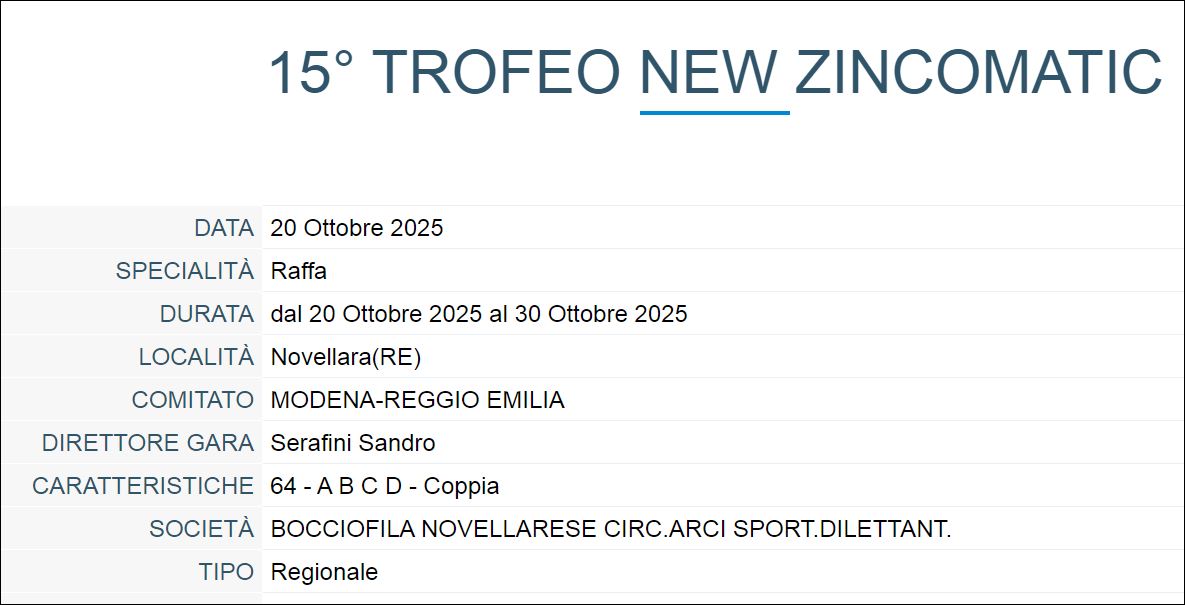 La competizione, una gara regionale di coppia, si è svolta a Novellara, ospitata dalla Bocciofila Novellarese, e ha tenuto gli appassionati con il fiato sospeso per dieci giorni, dal 20 al 30 ottobre.
